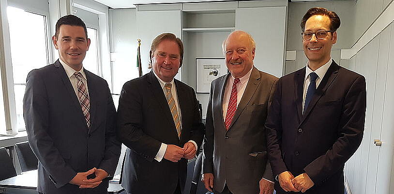 Am 7. Juni trafen sich die Spitzenvertreter von Haus & Grund Rheinland Westfalen mit dem NRW-Landesminister der Finanzen, Lutz Lienenkämper (CDU), zu einem Gespräch in seinem Ministerbüro in der Landeshauptstadt Düsseldorf. Die Gesprächsbasis war von Anfang an harmonisch, nicht zuletzt auch deshalb, weil Herr Lienenkämper in der Regierungszeit von Jürgen Rüttgers (CDU) der Landesbauminister war. Der Landesverband war vertreten durch seinen Präsidenten Konrad Adenauer, den Vizepräsidenten Dr. Johann Werner Fliescher und den Verbandsdirektor Erik Uwe Amaya.