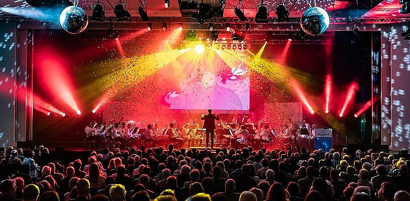 Der Festakt des Landesverbandstages begeisterte die Gäste nicht nur mit hochkarätigen Rednern, sondern auch mit einem beeindruckenden Show-Programm. Die Rheinisch-Bergische Bläserphilharmonie spielte Medleys aus den berühmtesten Filmen von Walt Disney. Dazu gab es eine spektakuläre Lichtshow und die passenden Filmausschnitte auf der Großbildleinwand. Ohne Zugabe kam das Orchester nicht mehr davon und beim anschließenden Sektempfang hatten wohl die meisten Zuschauer einen Ohrwurm im Kopf.